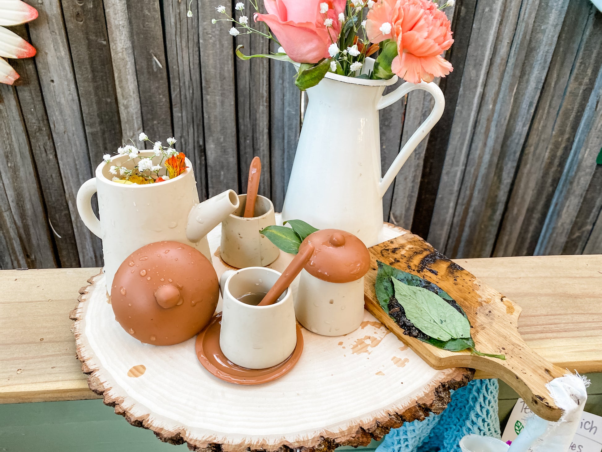 The perfect addition to spark your child's imagination and enhance their outdoor playtime adventures! Crafted with durability, safety, and creativity in mind, this tea set is designed to withstand the rigors of outdoor play while fostering imaginative role-play.