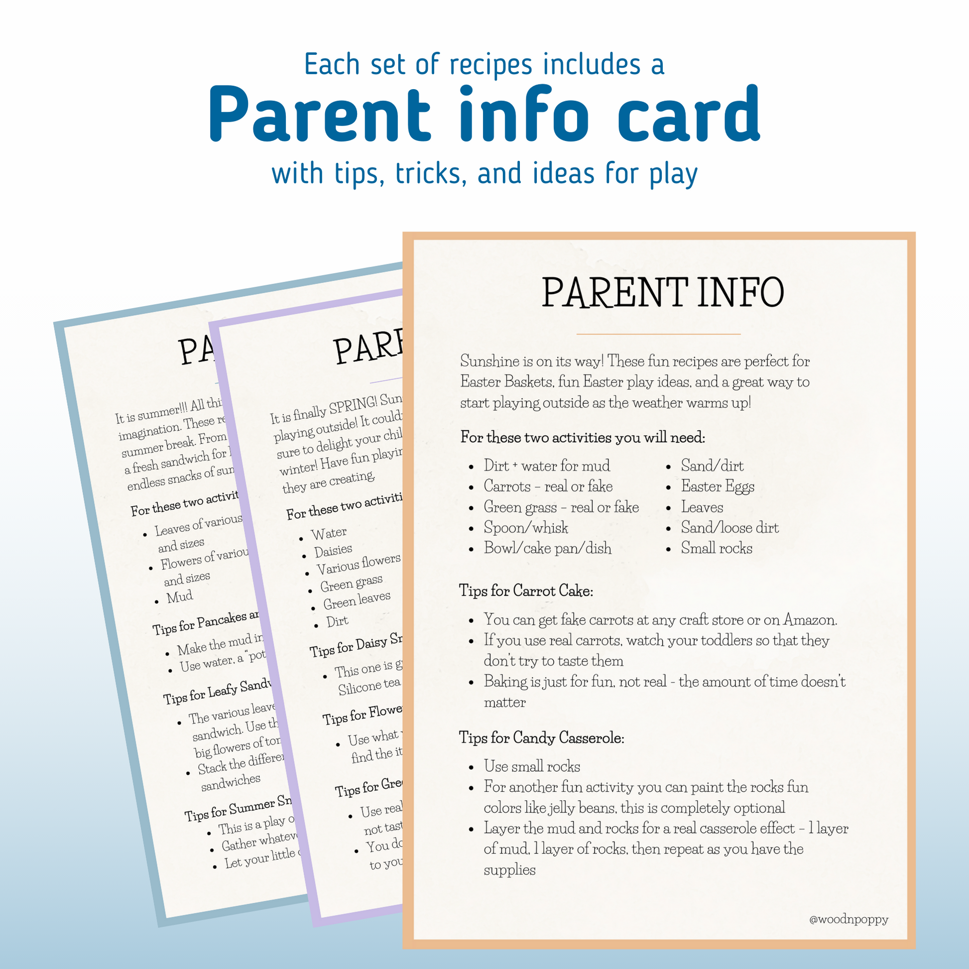Sensory play recipe cards for the warmer weather! Prep your kiddos for sunny season with a new set of recipe cards!